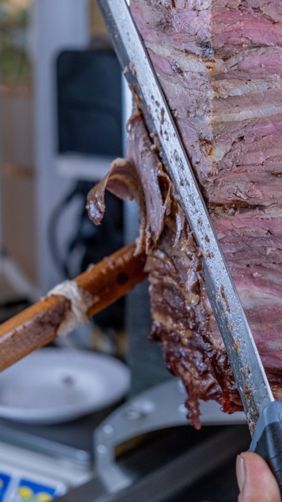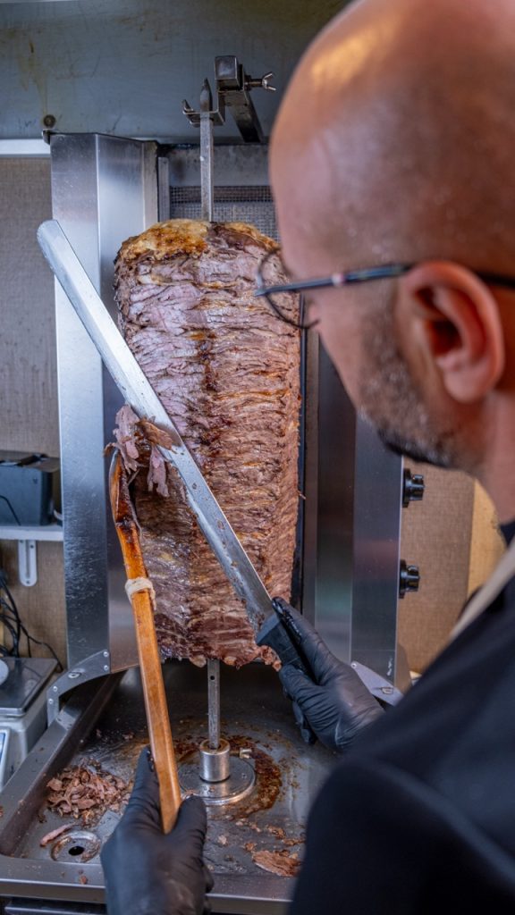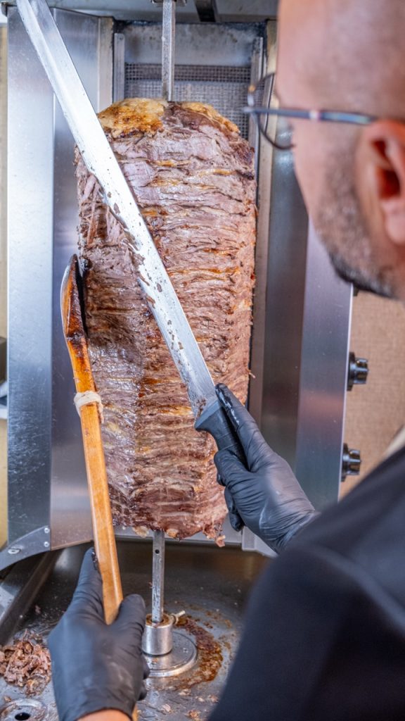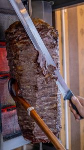 Ayvalık Altınsofra olarak, et döner ve İskender konusunda uzun yıllardır süregelen ustalığımızla tanınıyoruz. Kıymasız et dönerimiz, tamamen dana ve kuzu yağından özenle seçilmiş parçalarla hazırlanır ve hiçbir katkı maddesi içermez. Bu sayede doğal ve eşsiz bir lezzet sunar. İnce ince kesilen etler, yavaş yavaş pişirilir. Böylece dışı çıtır, içi ise yumuşak ve sulu kalır.